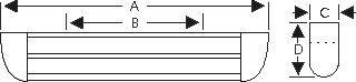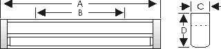 Cuerpo: Perfil realizado en chapa de acero, desengrasada y tratada con polvo Epoxi-Poliéster por aplicación electroestática, termoendureciendo a 200°C, estable a las radiaciones ultravioletas del tubo (no amarillera). Tapa posterior para fijación al techo, cantoneras de sujección del difusor fabricadas en ABS blanco. Difusor de policarbonato transparente. |